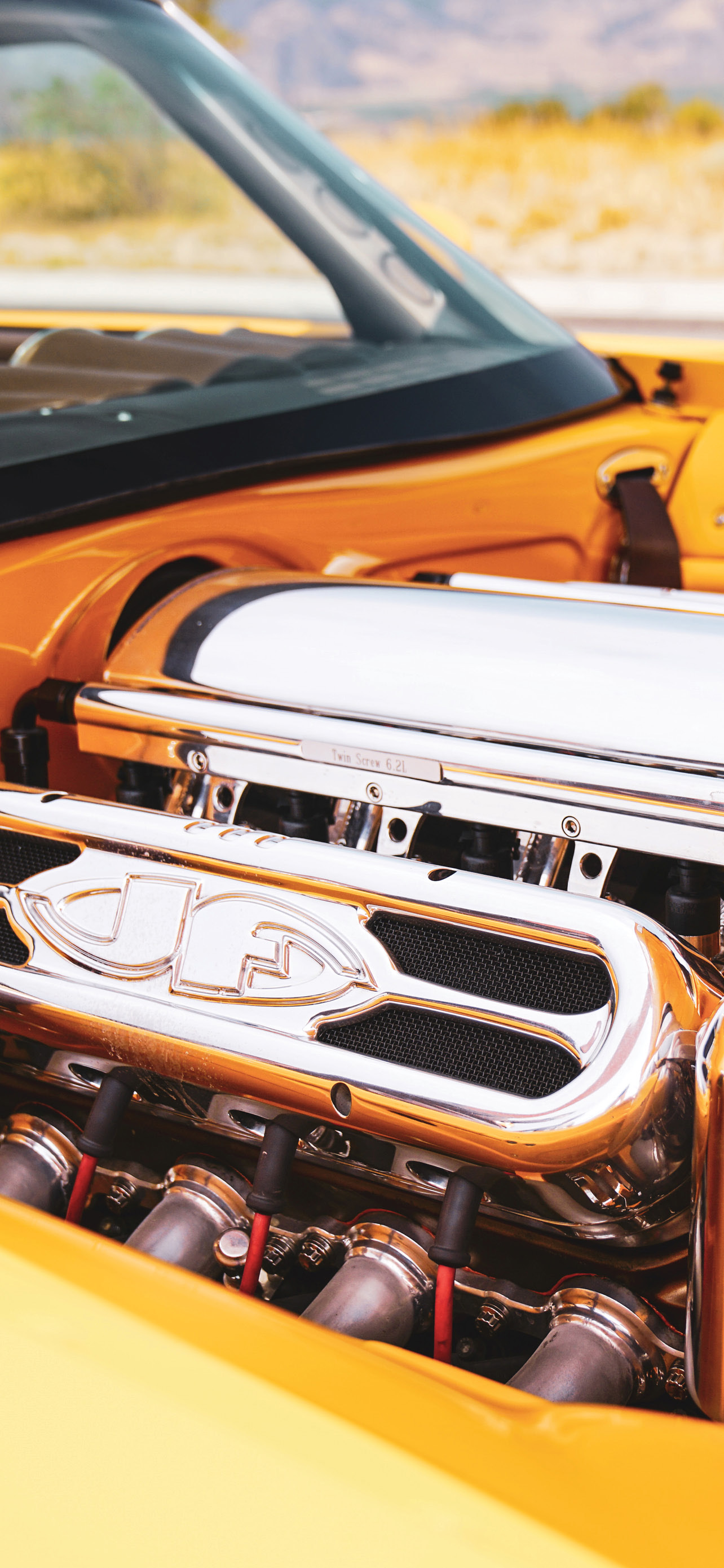 In the automotive world, winning Detroit Autorama's Don Ridler Memorial Award has been described as equivalent to winning a Nobel Prize. It’s that prestigious. Along with winning a Ridler, Rivision has graced the cover of no less than six automotive magazines. No surprise there—with its sculpted edges and flawless bright yellow paint, it commands every camera angle. At this Okanagan shoot, it works the runway as effortlessly as a Paris Fashion Week model.