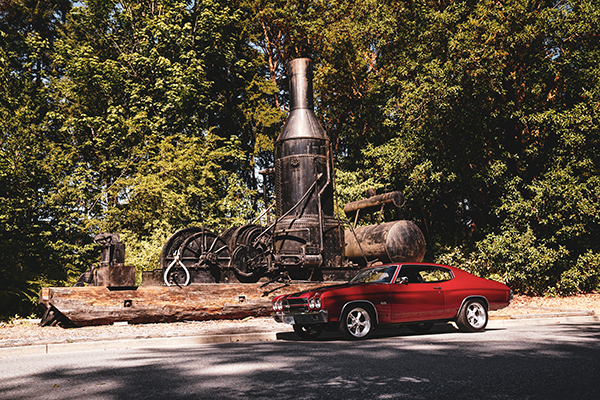Keeping all that torque under control is no easy task, but the help of a Turbo 400, Auburn rear end, and Strange Engineering axles make it possible. The beautiful deep red paint shifts from lighter to darker shades as you move around the vehicle, an amazing job done in Drayton Valley by the Dreamcar Restoration team.