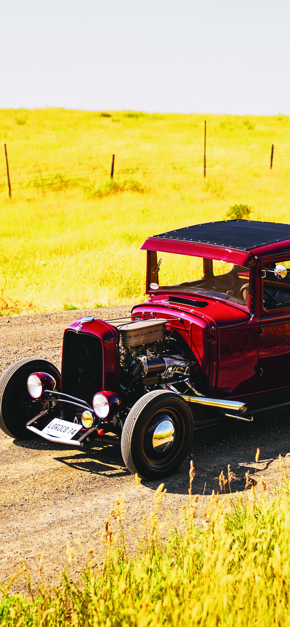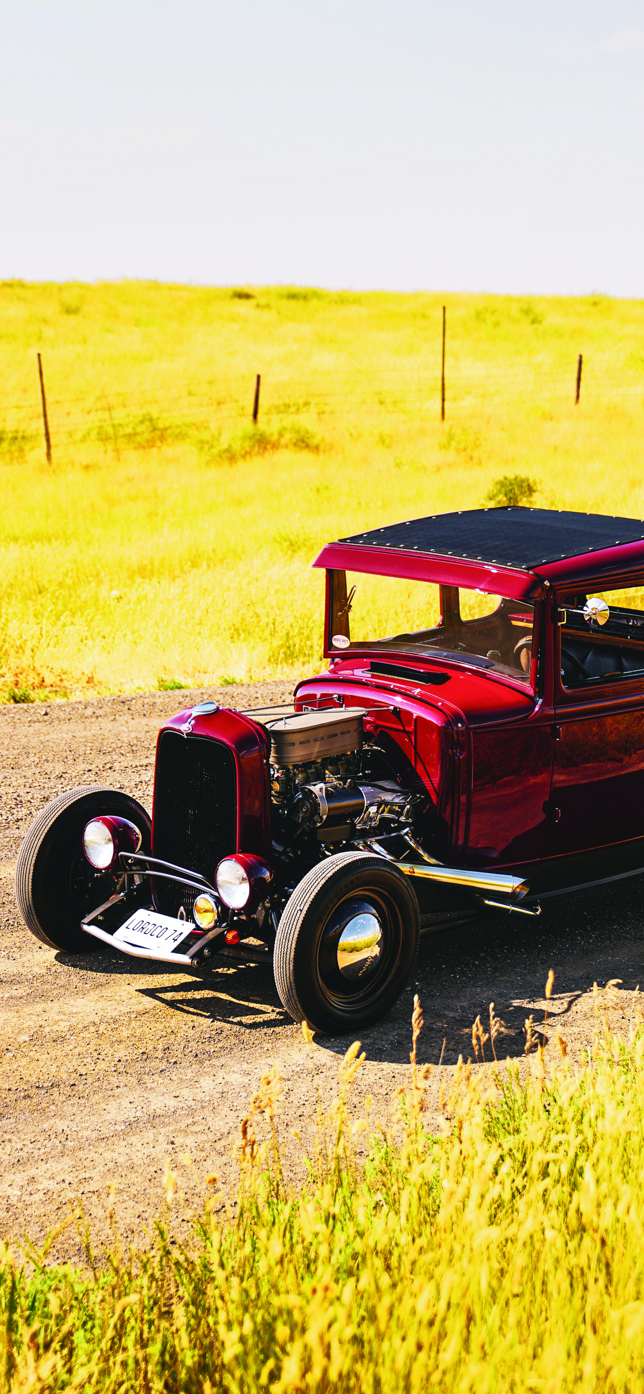The Model A crests the hill and breaks through the haze, emerging on the other side like a triumphant mirage. Cloaked in PPG’s Organic Maroon, its modern elegance and timeless design vividly contrast against the sunbaked landscape.